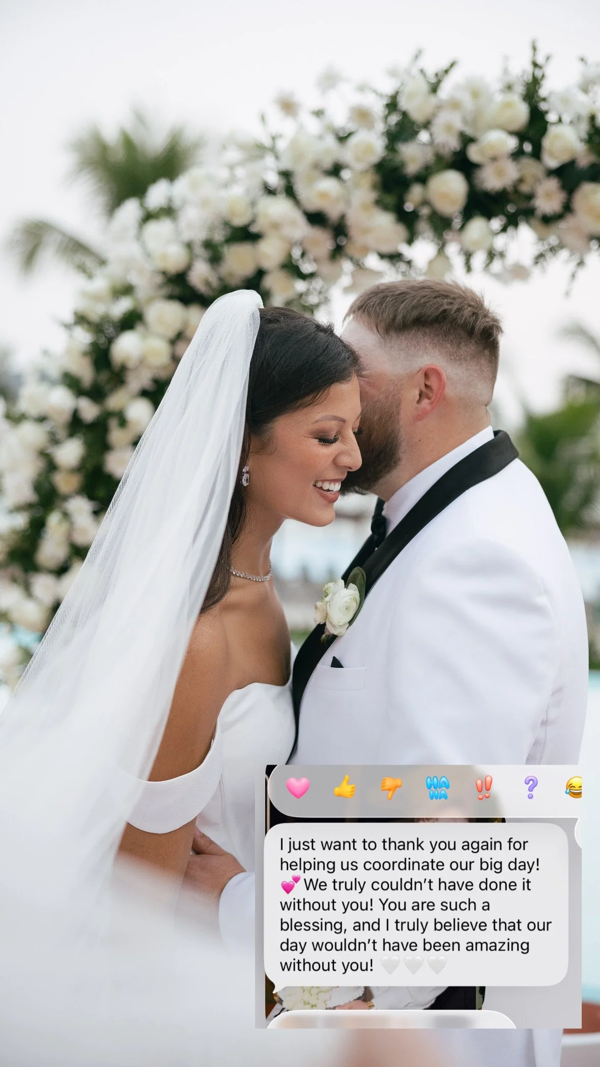 “I just want to thank you again for helping us coordinate our big day. We truly couldn’t have done it without you. You are such a blessing, and I truly believe that our day wouldn’t have been amazing without you.”